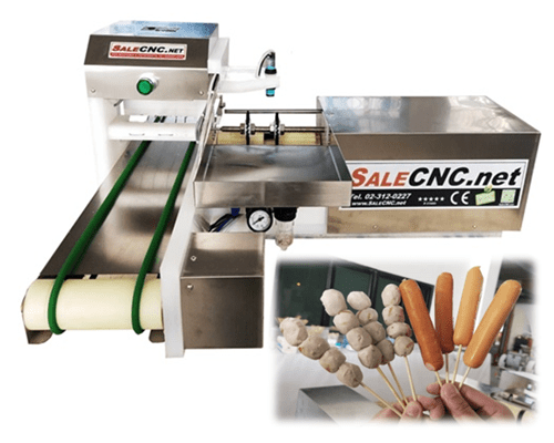 เครื่องเสียบไม้ salecnc.net เป็นที่นิยมในโรงงานอุตสาหกรรมอาหาร ใช้กับอาหารเสียบไม้ เช่น ลูกชิ้น ไส้กรอก