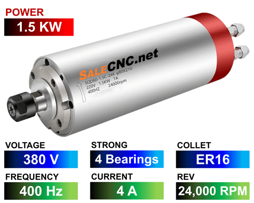 specification (รายละเอียดของ Water Spindle 1.5KW/380V LA-1500-380V-4B-ER16-2P)