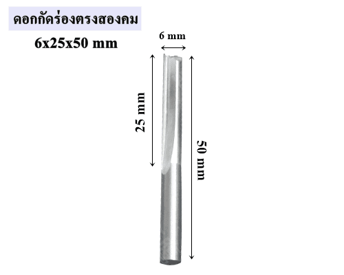 ดอกกัดร่องตรงสองคม 6x25x50 mm